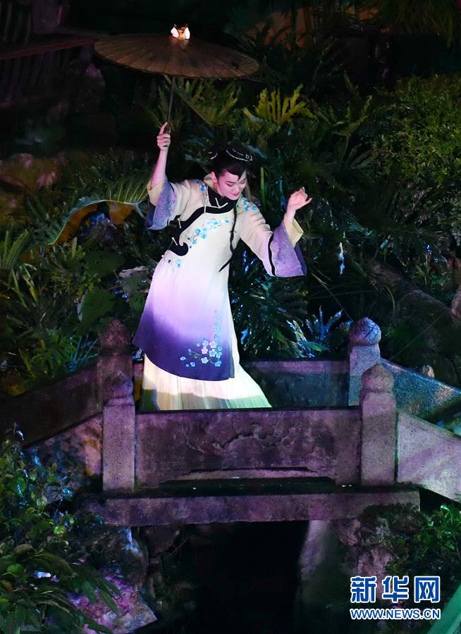 5月5日,演員在福州三坊七巷的水榭戲臺(tái)表演歌舞《煙雨坊巷》。 福州三坊七巷為國內(nèi)現(xiàn)存規(guī)模較大、保護(hù)較為完整的歷史文化名街區(qū),是中國十大歷史文化名街之一。位于三坊七巷內(nèi)的水榭戲臺(tái)經(jīng)常舉辦傳統(tǒng)文化演出吸引游客慕名前來觀賞。 新華社記者 林善傳 攝