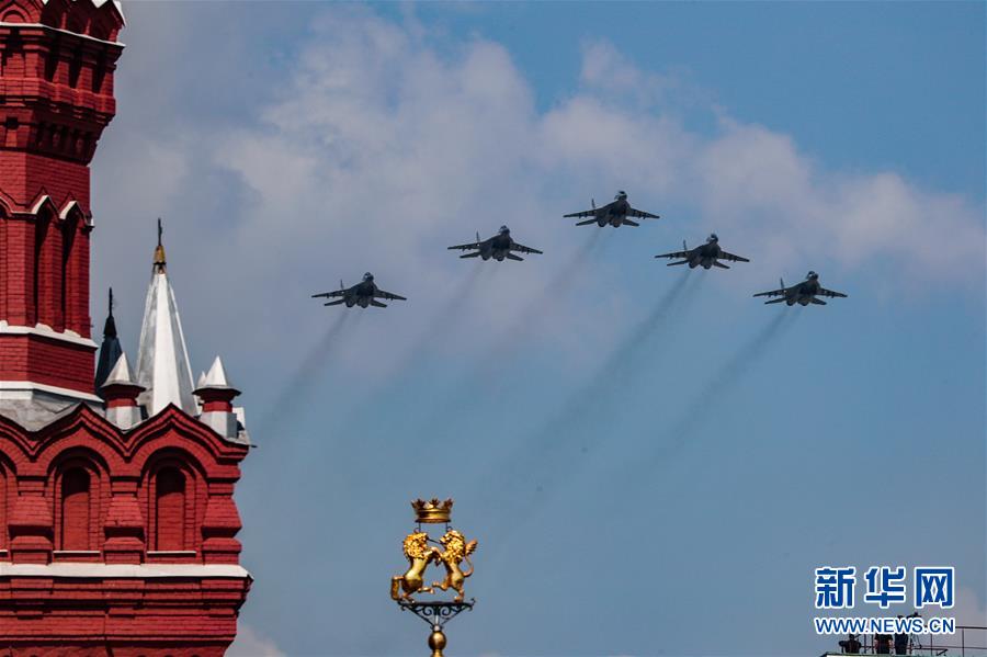 5月7日,在俄羅斯首都莫斯科,米格-29SMT戰(zhàn)斗機編隊參加閱兵彩排。 當天,莫斯科紅場舉行勝利日閱兵式彩排,完整演練9日閱兵全過程。5月9日是俄羅斯衛(wèi)國戰(zhàn)爭勝利日,莫斯科紅場閱兵儀式是當天的主要慶?;顒印?新華社記者 白雪騏 攝