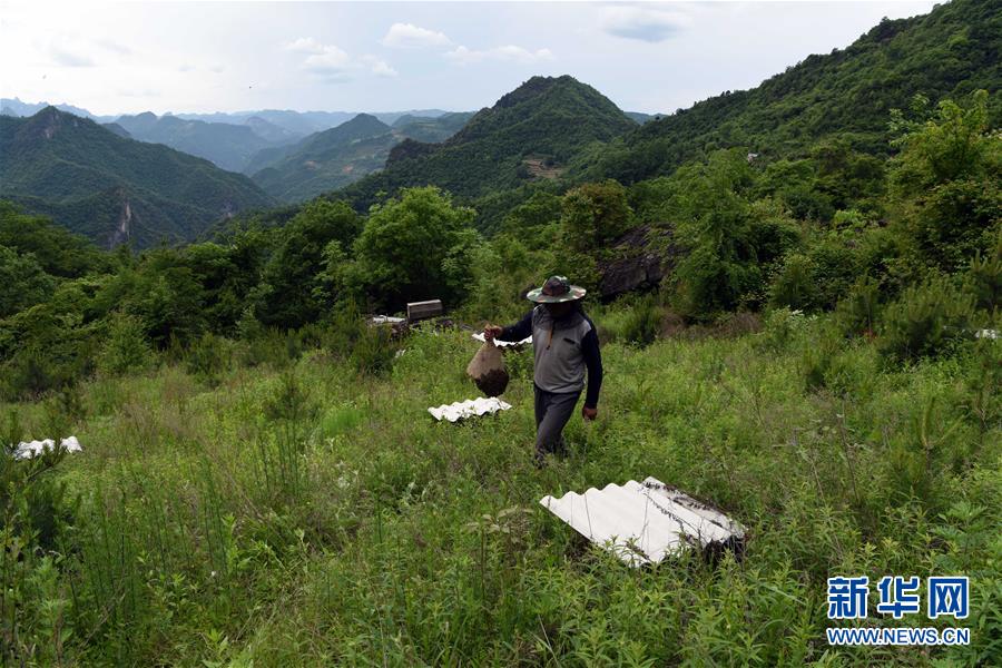 5月10日,在甘肅省隴南市徽縣大河店鎮(zhèn)硬灣村,蜂農(nóng)周仲頤在收蜂。 甘肅省隴南市徽縣大河店鎮(zhèn)硬灣村位于秦巴山區(qū)深處,2017年,在當(dāng)?shù)卣姆龀窒?,龍崖老巢蜜養(yǎng)殖農(nóng)民專業(yè)合作社成立,蜂農(nóng)們將傳統(tǒng)養(yǎng)蜂技藝和現(xiàn)代加工方式相結(jié)合,并通過電商等渠道打開銷路,有效帶動(dòng)了當(dāng)?shù)刎毨Т迕衩撠氈赂?。目前整個(gè)合作社共有蜂箱2000余個(gè),每箱每年可帶來三四千元的收入。 新華社記者 馬寧 攝
