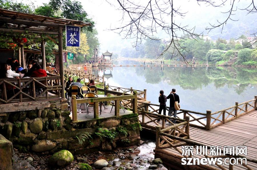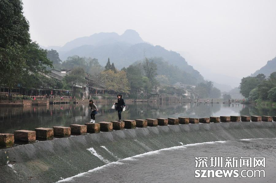 古鎮(zhèn)背靠峨眉、瓦屋仙山,楊村河、花溪河擁鎮(zhèn)而過。這里有川西風(fēng)情吊腳樓、訪古尋悠水碼頭、親水臨河古棧道、百年民居匯老街等特色景觀。李 仁奇 攝