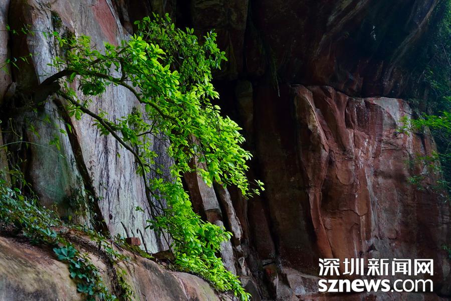丹霞地貌與大面積古植被和2359 種動植物、珍稀瀕危動植物共存,是赤水丹霞最獨特的特征。點綴在原始森林、竹海、桫欏之間,猶如紅寶石鑲嵌在綠洲之中,是世界罕見的綠色丹霞景觀。李仁奇 攝