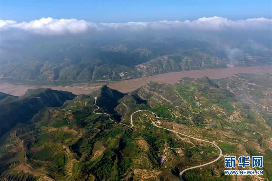 這是2017年9月6日無人機(jī)拍攝的山西省永和縣黃河乾坤灣。