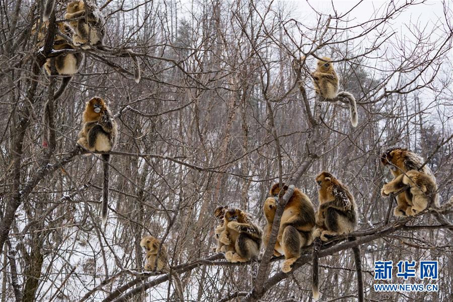 在神農架國家公園大龍?zhí)杜臄z的金絲猴(2017年1月10日攝)。 新華社記者 杜華舉 攝
