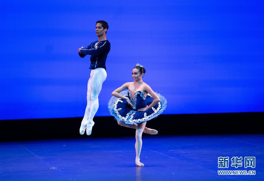 5月14日,在北京天橋藝術(shù)中心,菲律賓芭蕾舞團演員杰邁瑪·雷耶斯(右)、維克托·馬果表演古典大雙人舞。 當日,作為亞洲文化展演活動的開幕演出,中央芭蕾舞團攜手韓國、菲律賓等國家的藝術(shù)家共聚一堂,演繹了一場精彩的《亞洲芭蕾之夜》。 新華社記者 金良快 攝