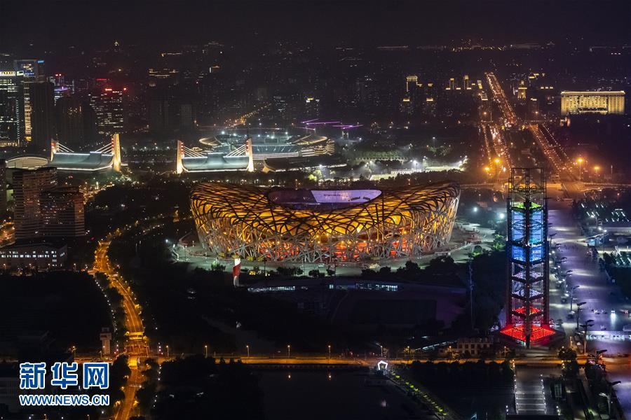 “鳥(niǎo)巢”燈光璀璨(5月14日攝)。 當(dāng)晚,一場(chǎng)“空間光影秀”在北京上演。 新華社記者 沈伯韓 攝