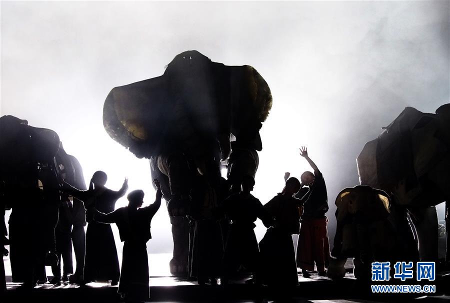 5月15日在上海美琪大戲院拍攝的新版大型人偶舞臺(tái)劇《最后一頭戰(zhàn)象》劇照。 當(dāng)日,作為第12屆中國藝術(shù)節(jié)的參演劇目,大型人偶舞臺(tái)劇《最后一頭戰(zhàn)象》在經(jīng)過4次硬件技術(shù)升級(jí)和故事修改后亮相上海美琪大戲院。 新華社記者 任瓏 攝