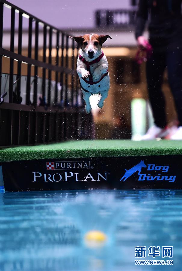 5月19日,在德國多特蒙德舉行的寵物展上,一只杰克羅素梗參加跳水比賽。 為期三天的德國多特蒙德“狗和貓”寵物展19日落幕。寵物展期間,人們帶著自己的“萌寵”來到會(huì)場,參與寵物跳水、舞蹈、選美等趣味比賽,并與其他寵物愛好者及展商交流互動(dòng)。 新華社記者逯陽攝