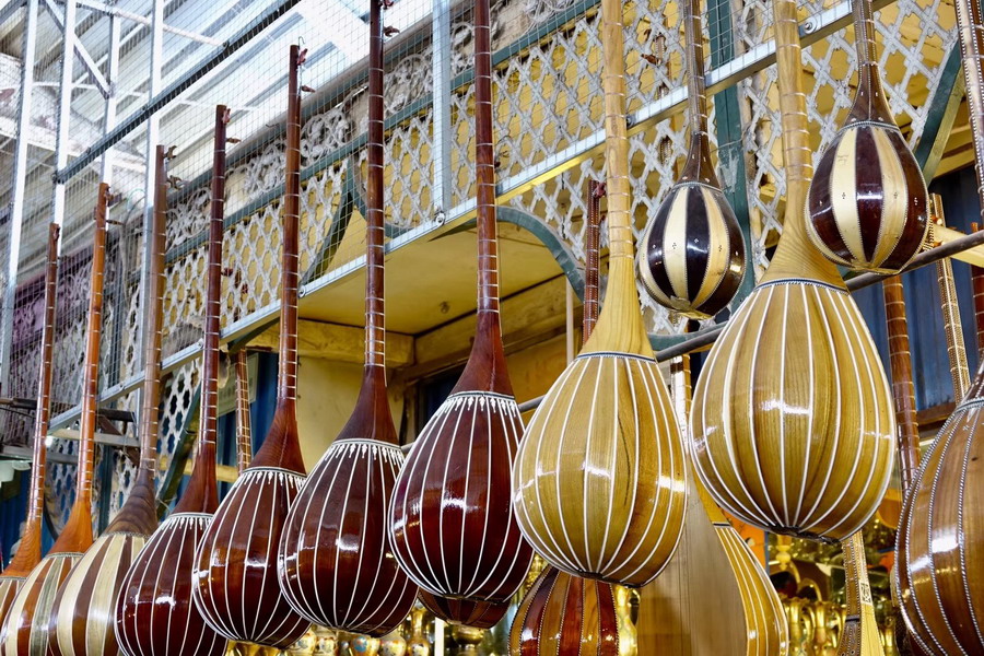 已有2000多年歷史,古代是亞洲最大的集市?,F(xiàn)在的大巴扎占地250畝,內(nèi)設(shè)21個(gè)專業(yè)市場(chǎng),5000多個(gè)攤位,每天人流量達(dá)10萬(wàn)以上,是我國(guó)西北地區(qū)最大的國(guó)際貿(mào)易市場(chǎng)。李仁奇  攝