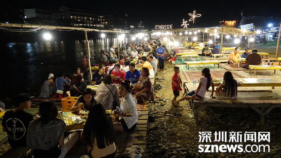 萬榮的開放程度很高。夜晚,南松河畔、街道兩旁都是酒吧,常??梢钥吹狡骰貋砩碇狙b的“老外”當(dāng)街站立。李仁奇 攝