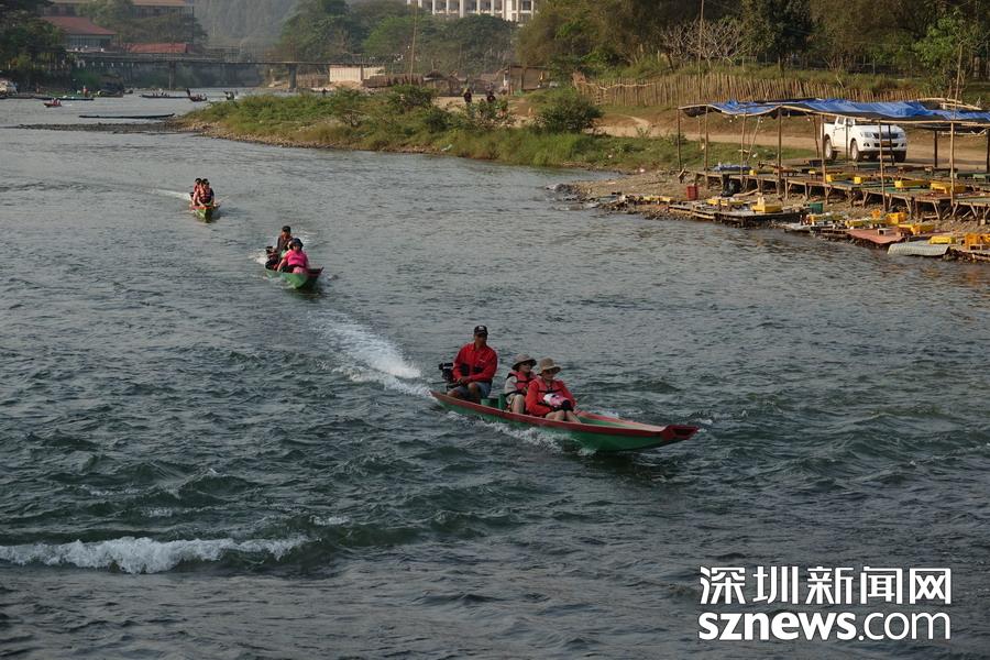 萬榮的喀斯特地貌既典型又集中,在酒店陽臺上就可以將其精華一覽無余,乘小型機(jī)動船在流經(jīng)小鎮(zhèn)的南松河上漂流是當(dāng)?shù)氐拇蚩糜雾?xiàng)目。李仁奇 攝