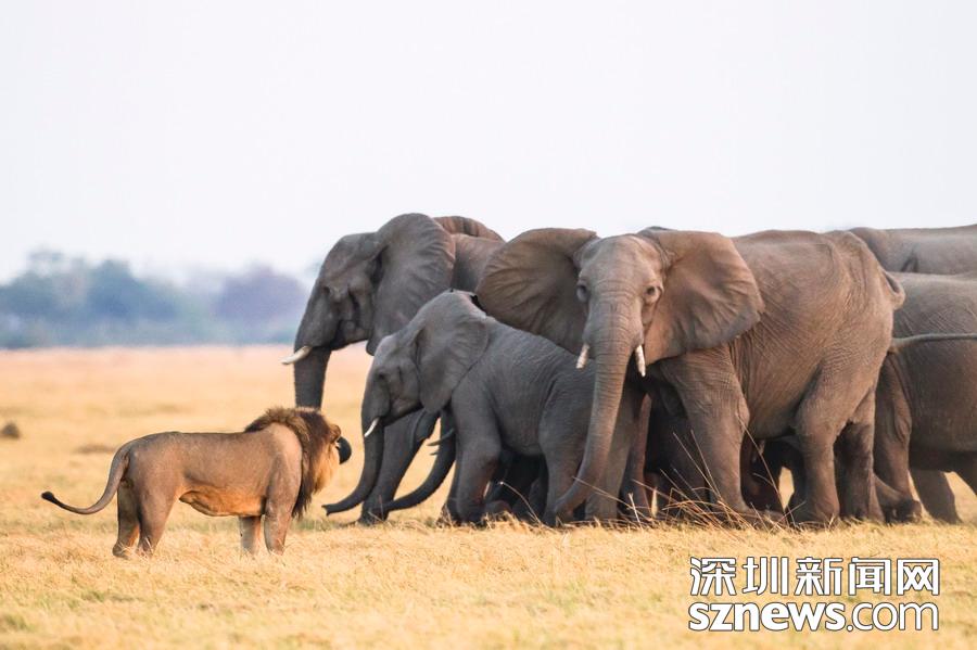 英國攝影師詹姆斯(James Gifford)在博茨瓦納喬貝國家公園拍到一群獅子獵食大象的精彩畫面。在詹姆斯的鏡頭下,一頭母獅跳到了一頭小象的背上想要將其拿下,但僅憑一己之力又不能做到。但當(dāng)母獅的后援抵達(dá)時(shí),象群也趕到了現(xiàn)場。最終,小象回到了象群中獲得庇護(hù),而獅群也不得不悻悻離去。