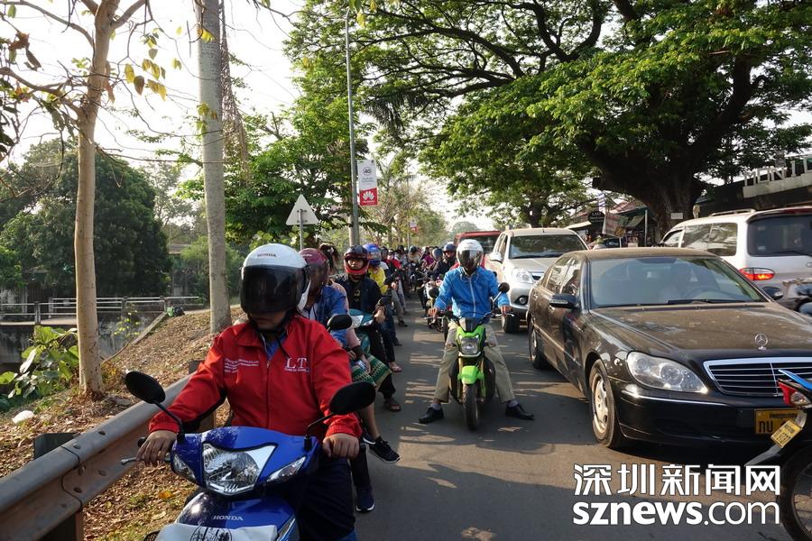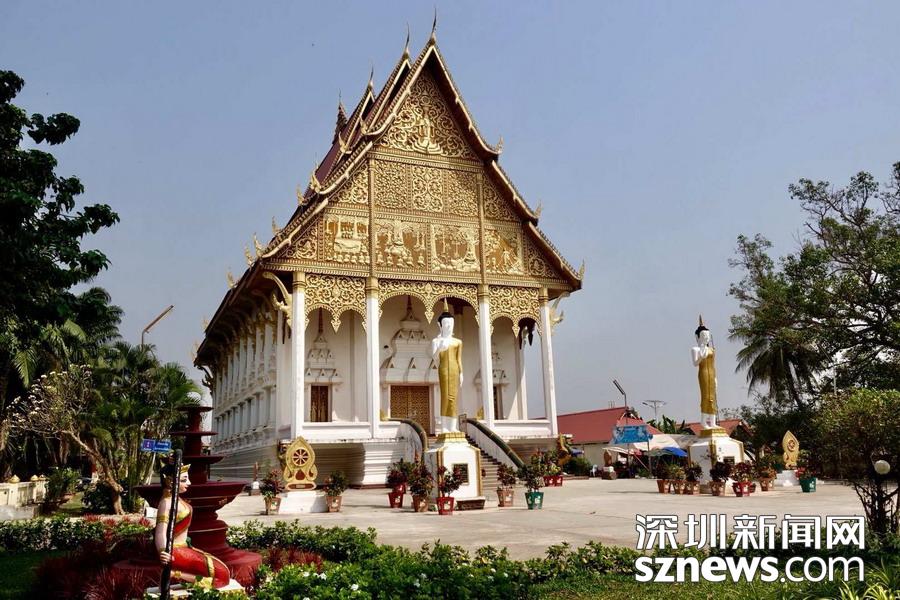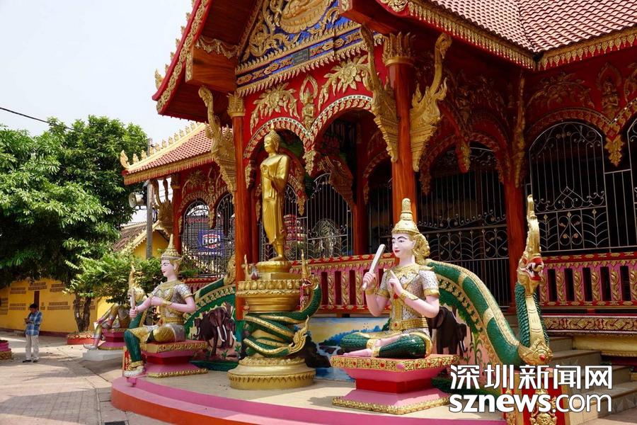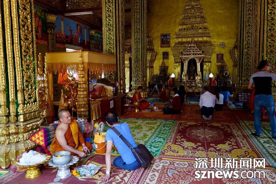 西蒙寺是萬象香火最旺盛的一個(gè)寺廟,又稱神城寺,每天有很多當(dāng)?shù)厝思坝慰蛠磉@里祈福,尤其受泰國(guó)游客鐘愛。李仁奇 攝