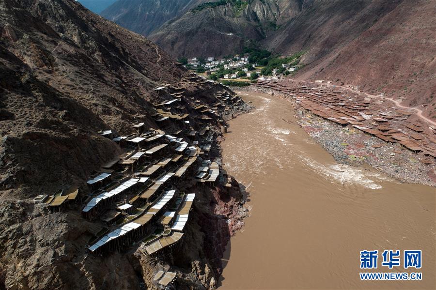 這是西藏芒康縣納西民族鄉(xiāng)的古鹽田景觀(5月22日無(wú)人機(jī)拍攝)。位于西藏昌都芒康縣瀾滄江畔的古鹽田,至今仍保持最原始的手工曬鹽方式。據(jù)史料記載,唐朝時(shí)期當(dāng)?shù)鼐烷_始曬鹽。鹽田在瀾滄江兩岸依山而建,由多根木柱搭架,架上用透水性強(qiáng)的泥土鋪成平面夯實(shí),當(dāng)?shù)鼐用駨臑憸娼系柠}井、鹽池中取出鹵水倒入鹽田,經(jīng)陽(yáng)光蒸曬、風(fēng)干,結(jié)晶成鹽。遠(yuǎn)遠(yuǎn)望去,鹽田錯(cuò)落有致,田中鹵水宛若鏡面,形成壯麗奇觀。新華社記者李鑫 攝