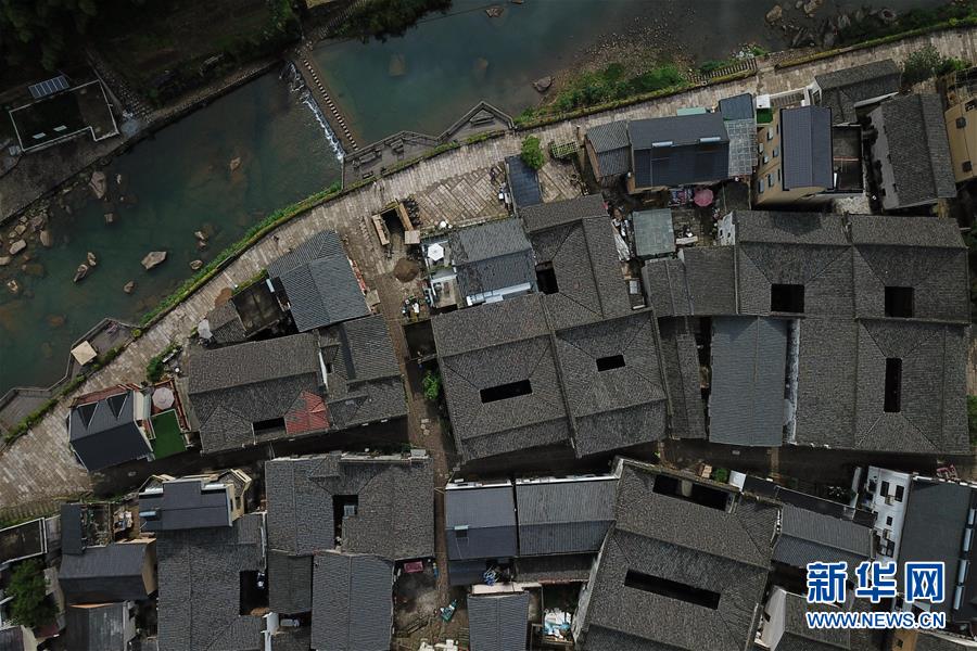 5月26日無人機(jī)拍攝的富春江鎮(zhèn)石舍村的古建筑群。 石舍村是浙江省桐廬縣富春江鄉(xiāng)村慢生活體驗區(qū)中的三個村落之一,位置偏僻,依溪而居,風(fēng)景秀美。近年來,石舍村結(jié)合古建筑保護(hù)工作,在清潔、美化村莊的基礎(chǔ)上,對一些廢棄古建筑進(jìn)行修繕,引入咖啡館、民宿等文化創(chuàng)意類項目,優(yōu)良的生態(tài)環(huán)境和濃郁的文化氛圍吸引大批游客前來體驗,小山村走上了一條發(fā)展美麗經(jīng)濟(jì)之路。2018年,石舍村接待游客10萬8千余人次,旅游經(jīng)營凈收入1260余萬元。 新華社記者 黃宗治 攝