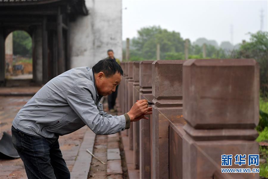 4月28日,在江西省南昌市南昌縣岡上鎮(zhèn)省級文物保護(hù)單位“吳氏家廟”內(nèi),搶修工程隊的工人在打磚刻石。近年來,江西省南昌市南昌縣推動古村落保護(hù)工作。2019年,首批搶修工程隊進(jìn)駐南昌縣岡上鎮(zhèn),對當(dāng)?shù)刂氖〖壩奈锉Wo(hù)單位“吳氏家廟”及縣級文物保護(hù)單位“吳培荊堂古建筑群”進(jìn)行搶救性維修。同時當(dāng)?shù)卣€制定文旅規(guī)劃,讓文物保護(hù)與觀光旅游相結(jié)合,推動鄉(xiāng)村振興。 新華社記者 彭昭之 攝