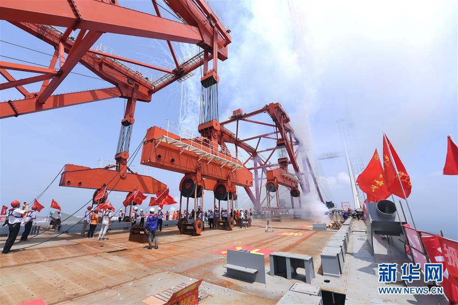 福平鐵路平潭海峽公鐵兩用大橋元洪航道橋主橋成功合龍現(xiàn)場(6月5日攝)。