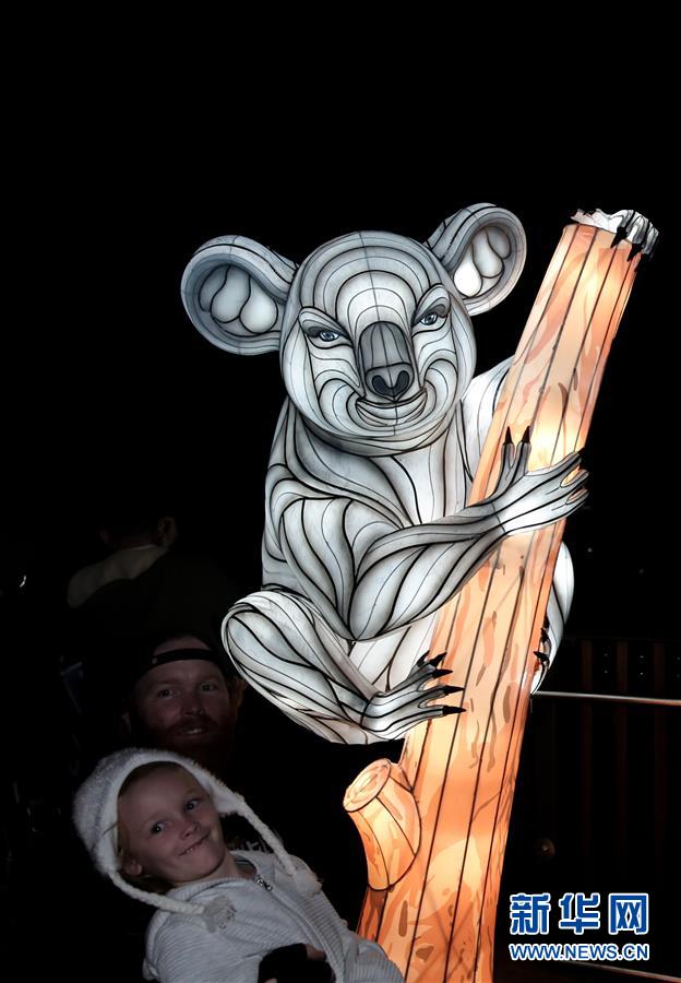 6月8日,在澳大利亞悉尼塔朗加動物園,游客參觀考拉造型花燈。新華社記者 白雪飛 攝