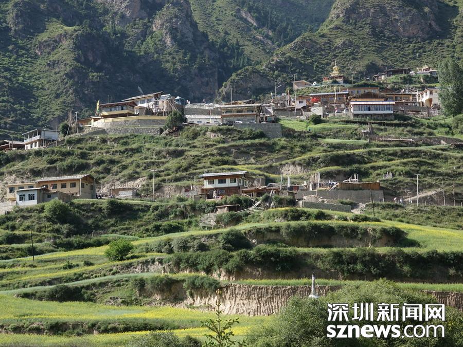 正北是璀璨生輝、巍峨恢宏、雄偉壯觀的迭山主脊光蓋山石峰,另外三面皆是秀峰環(huán)拱,蒼松翠柏郁郁蔥蔥,猶如高峻雄渾、堅(jiān)不可推的城墻,把扎尕那四村一寺圍在城中,其中東哇村和桑拉寺院正巧座落于石城中央。李仁奇攝
