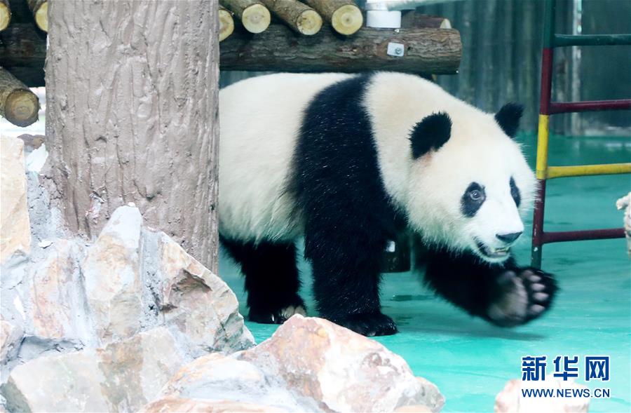 6月18日,大熊貓“和風(fēng)”在裝修一新的大熊貓館內(nèi)散步。 當(dāng)日,來自四川的大熊貓兄弟“和風(fēng)”與“星光”飛抵上海,正式開始了在上海動(dòng)物園為期三年的生活。為迎接這對(duì)“風(fēng)光兄弟”,上海動(dòng)物園將原有的大熊貓館擴(kuò)建并裝修一新,空調(diào)、水池、游樂場(chǎng)以及竹葉儲(chǔ)存間等配置齊全。 新華社記者 方喆 攝