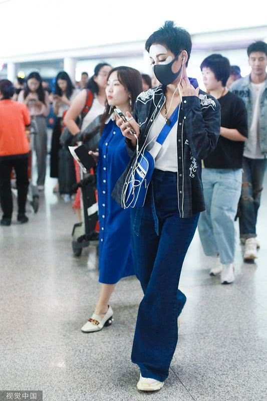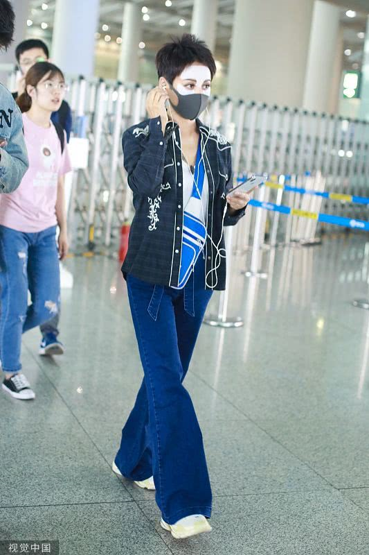 2019年6月19日,北京,寧?kù)o現(xiàn)身機(jī)場(chǎng)。她穿敷面膜亮相短發(fā)干練個(gè)性灑脫,戴口罩對(duì)鏡揮手大方任拍。