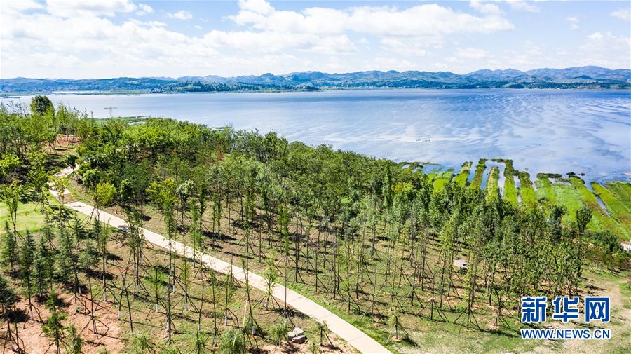 6月20日無(wú)人機(jī)拍攝的草海國(guó)家級(jí)自然保護(hù)區(qū)萬(wàn)噸生活污水處理廠。 新華社記者 陶亮 攝