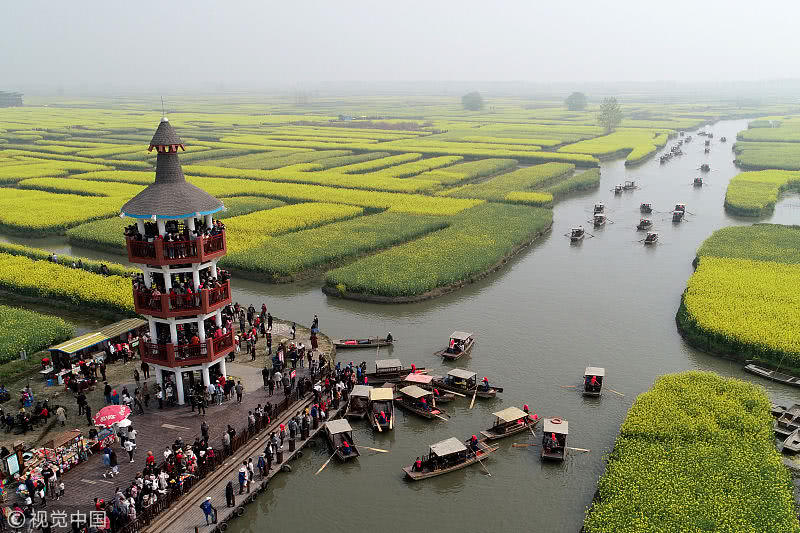 2019年4月7日,江蘇省興化市千垛菜花景區(qū)迎來(lái)旅游高峰期,數(shù)萬(wàn)游客前來(lái)欣賞盛開(kāi)的油菜花,樂(lè)享假日好時(shí)光。