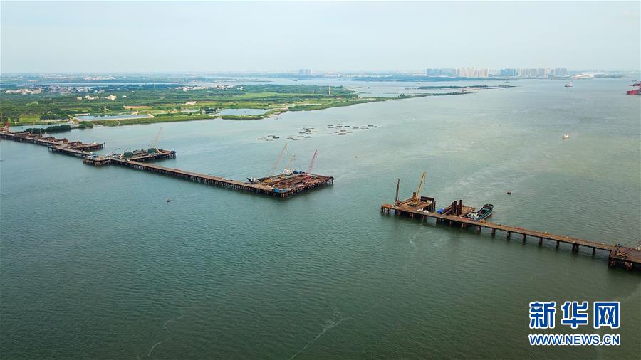 這是7月6日無人機(jī)拍攝的湛江調(diào)順跨海大橋建設(shè)現(xiàn)場。 新華社記者 劉大偉 攝