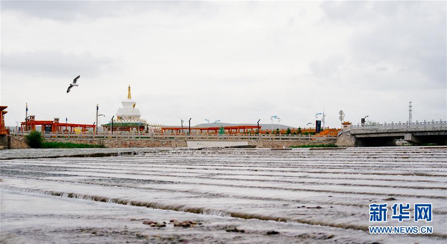 7月6日,在青海省剛察縣沙柳河,棕頭鷗在覓食。  新華社記者 張宏祥攝