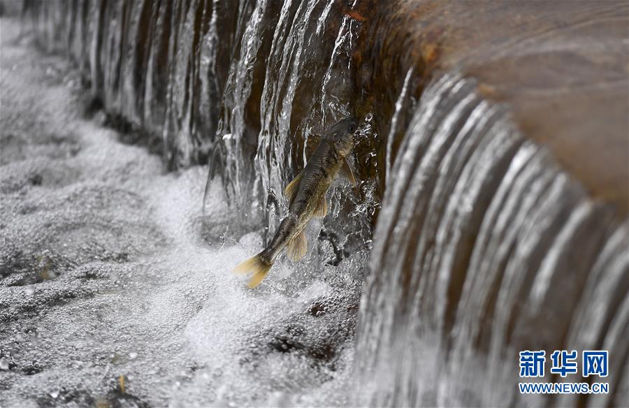 7月6日,在青海省剛察縣沙柳河里,一條湟魚在洄游。 新華社記者 張宏祥攝
