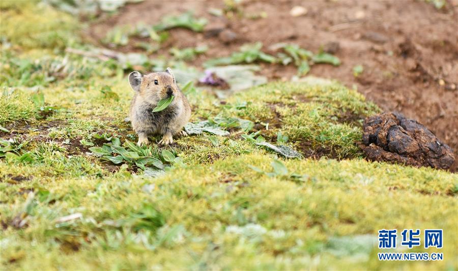 7月6日,一只高原鼠兔在西藏思金拉錯湖邊進食。 新華社記者 周錦帥 攝