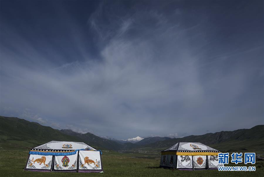 在阿尼瑪卿雪山附近一個(gè)農(nóng)家樂(lè)的院子里遙望阿尼瑪卿雪山(7月10日攝)。 新華社記者 費(fèi)茂華 攝