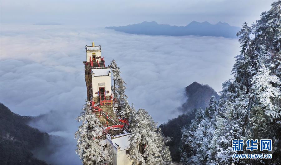 3月3日拍攝的塔云山金頂觀音殿(無(wú)人機(jī)拍攝)。 新華社記者陶明攝