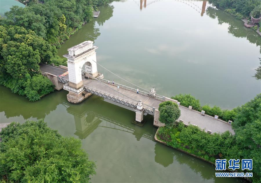 桂林市榕湖上的橋梁(7月1日無人機(jī)拍攝)。 夏日時節(jié),廣西桂林市區(qū)內(nèi)的榕湖、杉湖、桂湖、木龍湖等地綠樹成蔭、景色迷人。 新華社記者陸波岸攝