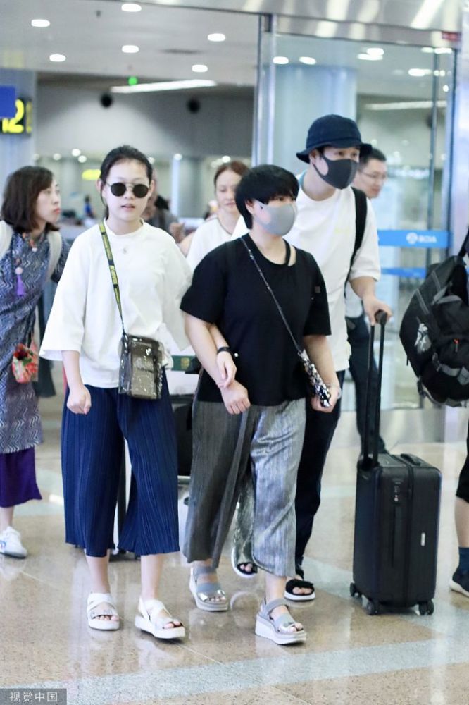 2019年8月15日,北京,小沈陽和妻子沈春陽帶女兒沈佳潤現(xiàn)身機(jī)場,一家三口罕見同框。小沈陽承包行李甘當(dāng)“苦力”,沈春陽和女兒全程挽手親昵似閨蜜,兩人同穿闊腿褲和鞋子,畫面溫馨有愛。