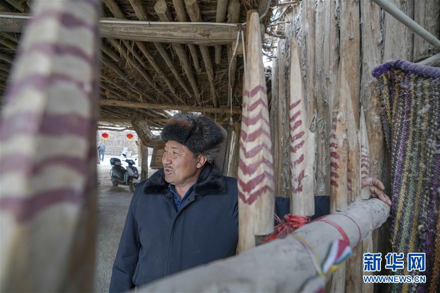 阿木東·艾不東在羅布人村寨的家里(1月29日攝)。他家的裝修都突出了當地文化。新華社記者 趙戈 攝