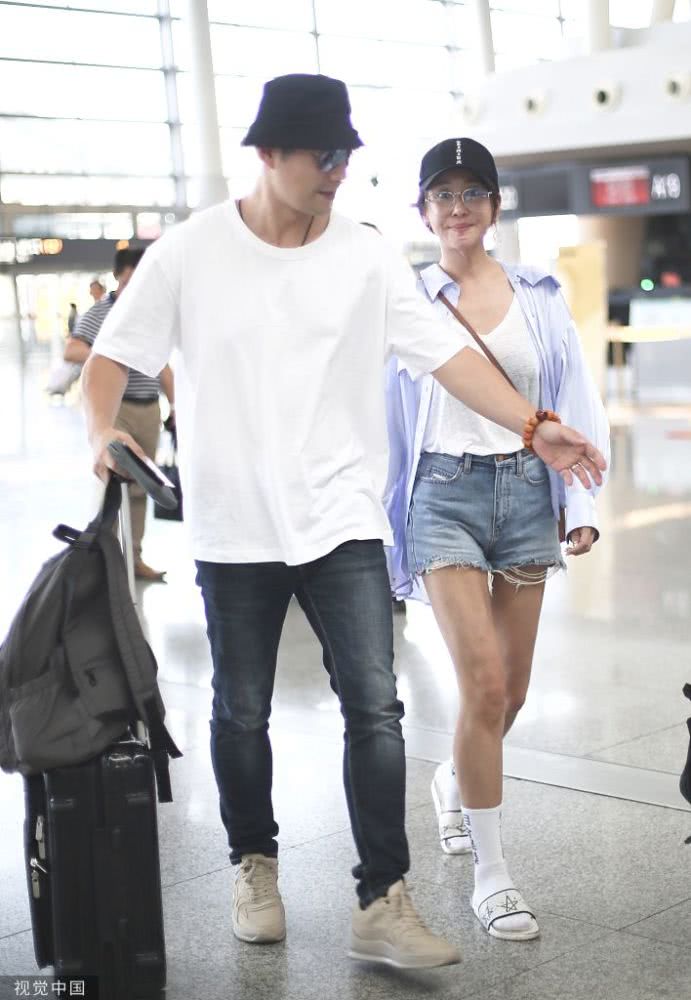 2019年8月19日,長沙,嚴(yán)屹寬、杜若溪夫婦現(xiàn)身機(jī)場。辦完登機(jī)手續(xù)后嚴(yán)屹寬主動(dòng)拎過所有行李,妥妥的模范老公,而美美的杜若溪素顏亮相,大玩下衣失蹤秀美腿,襪子上的“相當(dāng)暴躁”有點(diǎn)意思!