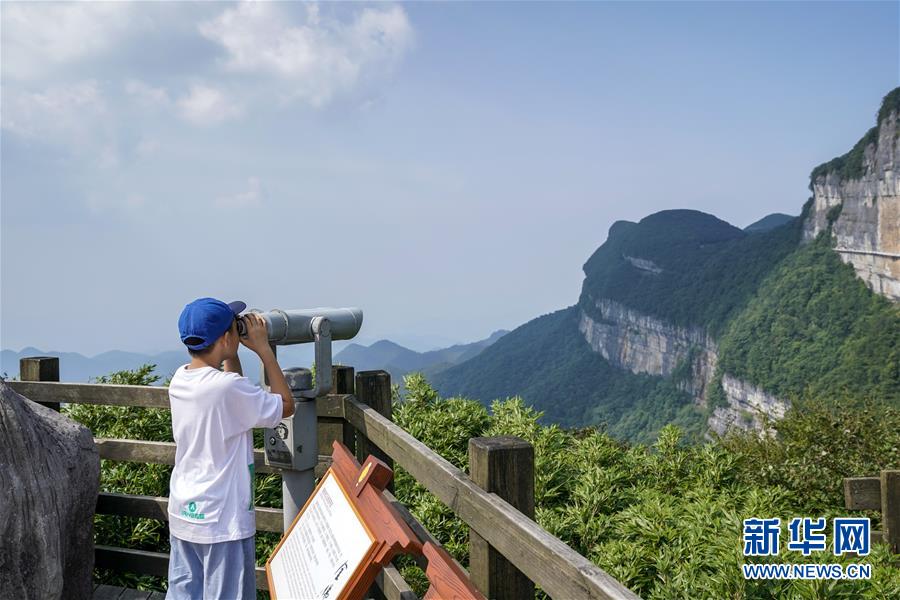 游客在重慶金佛山風(fēng)景區(qū)用望遠鏡觀景(8月20日攝)。 新華社記者 劉潺 攝