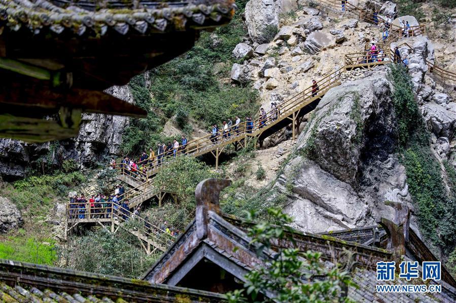 游客在天生三橋景區(qū)游覽(3月27日攝)。 隨著天氣轉(zhuǎn)暖,重慶武隆天生三橋景區(qū)風(fēng)景如畫,氣勢(shì)磅礴的天生石橋和綠意盎然的山林相映成趣,吸引眾多游客前來(lái)踏春賞景。 新華社記者劉潺攝