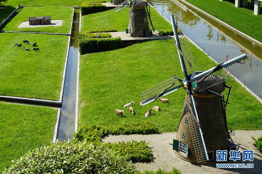 這是8月25日在荷蘭海牙馬德羅丹公園拍攝的微縮風車。 新華社記者 林立平 攝