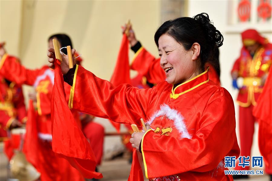 武鄉(xiāng)縣大有鄉(xiāng)王莊溝村村民在表演快板(2月19日攝)。 新華社記者 詹彥 攝