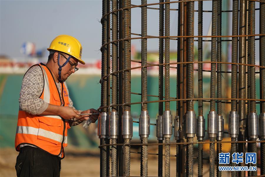 5月1日,中鐵建工的建設者在雄安高鐵站施工。 “五一”小長假期間,建設者仍然在雄安高鐵站的建設工地上忙碌。 新華社記者 邢廣利 攝