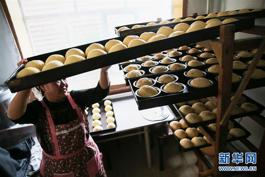 8月29日,付艷梅取出發(fā)酵好的面包團(tuán)。新華社記者淡航攝