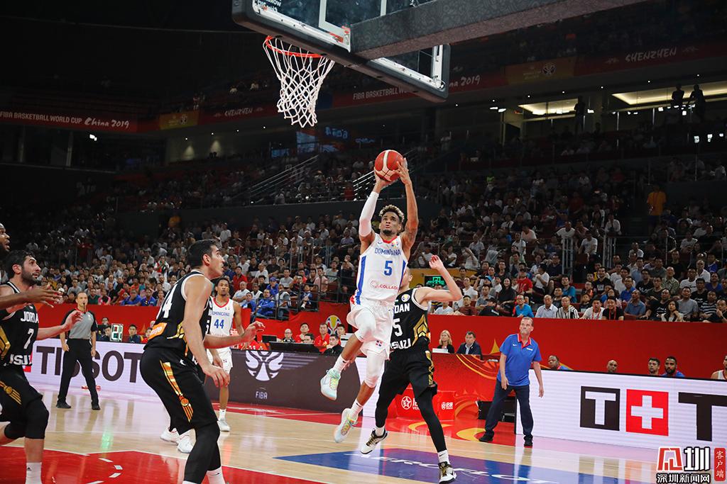 一位多米尼加隊(duì)的球員正在上籃。