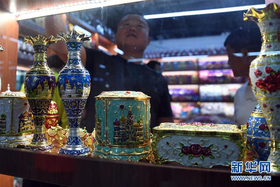 9月4日,在新疆塔城地區(qū)巴克圖口岸,顧客在絲路文化商品城內(nèi)選購(gòu)商品。 新華社記者程麗攝