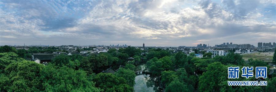 這是無(wú)人機(jī)拍攝的蘇州滄浪亭景色(5月10日攝)。 新華社記者 季春鵬 攝