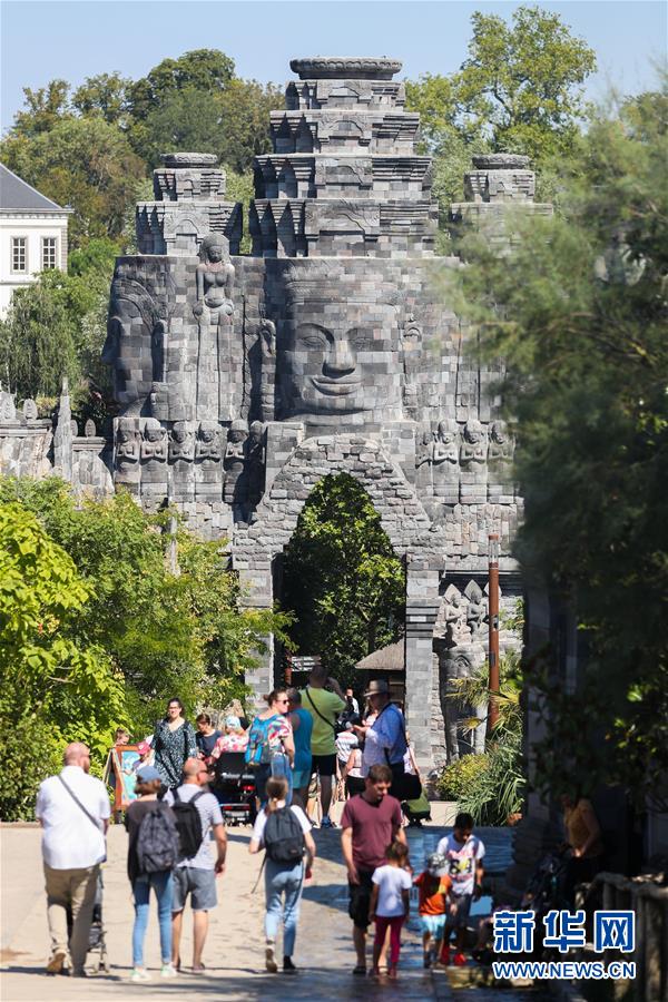 8月24日,在比利時布呂熱萊特市,游客在天堂動物園具有東南亞風(fēng)情的園林區(qū)游玩。新華社記者 鄭煥松 攝