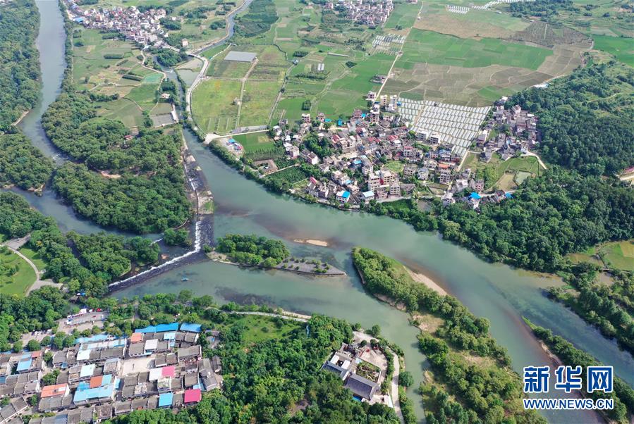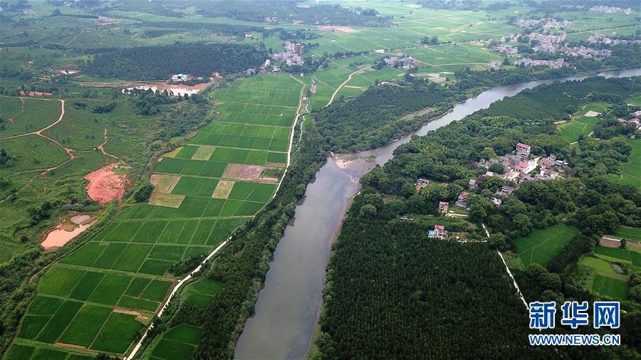這是槎灘陂水利灌溉工程一景(5月29日無人機(jī)拍攝)。新華社記者彭昭之?dāng)z