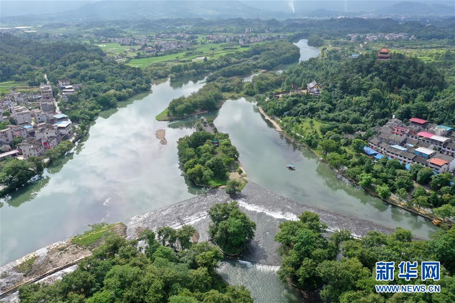 這是廣西興安縣靈渠水道上建設(shè)的灌溉堰壩(2017年6月8日攝)。 新華社記者 陸波岸 攝
