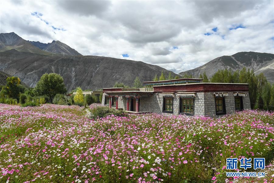 9月13日拍攝的尼木縣山谷間盛開(kāi)的波斯菊。 新華社記者 晉美多吉 攝