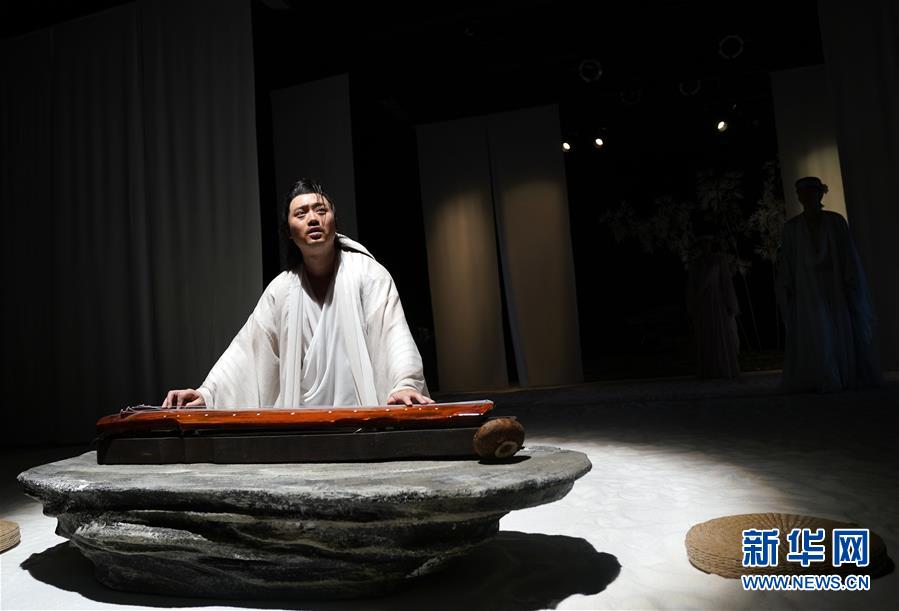 9月16日,演員在話劇《廣陵絕》中表演。 當(dāng)日,話劇《廣陵絕》在北京人藝實(shí)驗(yàn)劇場(chǎng)上演。該劇由中國戲劇家協(xié)會(huì)副主席王曉鷹任藝術(shù)指導(dǎo),龐貝編劇,通過魏晉名士嵇康與戰(zhàn)國刺客聶政的“同構(gòu)”拼貼,旨在展現(xiàn)中國傳統(tǒng)“道義”精神,反思生命與自由沖突,探討人的主體意識(shí)覺醒。 新華社記者 金良快 攝